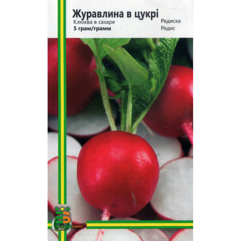 Редис Журавлина в цукрі - це ранньостиглий сорт. Цінується за вирівняність великих коренеплодів та компактну розетку листя. Рослина вимагає рясного поливу, особливо в спеку (1-2 рази на день), а також розпушування ґрунту. Висівають насіння редиски Журавлина в цукрі під плівку на початку квітня або починаючи з травня - у відкритий ґрунт. Схема посіву – 10 на 4 см, заглиблювати не потрібно. Від перших сходів до технічної зрілості проходить 20-25 діб.