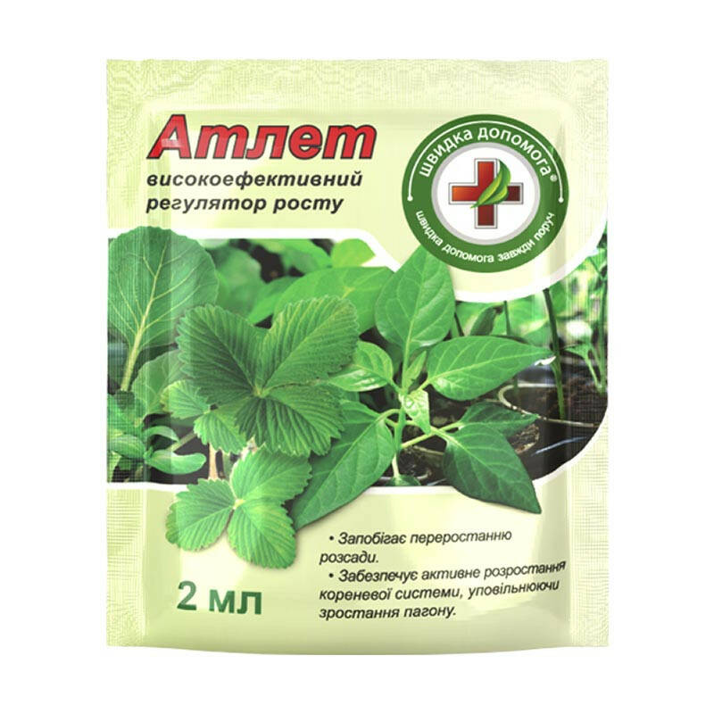 Атлет – препарат, який тимчасово призупиняє ріст верхівкової та стимулює розвиток бічної твірної тканини – пагін не подовжується, а потовщується. Уповільнення росту надземної частини призводить до потовщення стебла, формування ширшої листкової пластинки, посиленого коренеутворення. В рослину препарат проникає через листя (обприскування) або коріння (полив). Атлет є дуже ефективним засобом для вирощування міцної розсади з розвиненою кореневою системою.