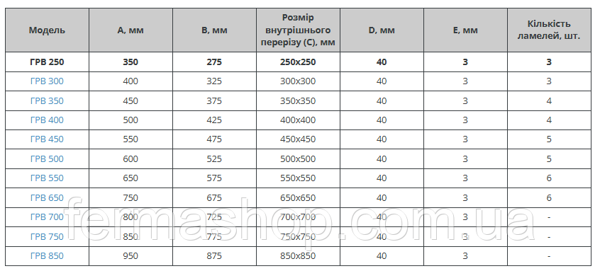 Розміри гравітаційних решіток дивись у фото до цього товару.
