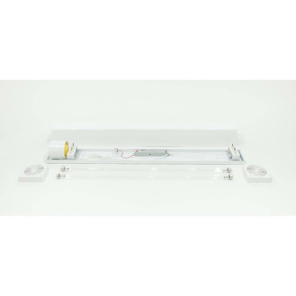 Рециркулятор бактерицидний Аерекс Стандарт 3×30 призначений для знезараження повітря у приміщеннях від вірусів, бактерій, грибкових спор та інших патогенних мікроорганізмів. Робота ґрунтується на примусовій циркуляції повітря через камеру з трьома безозоновими бактерицидними лампами, що випромінюють ультрафіолет із довжиною хвилі 253,7 нм. Осьовий вентилятор забезпечує рівномірний рух повітря, завдяки чому досягається ефективна дезінфекція навіть у присутності людей.