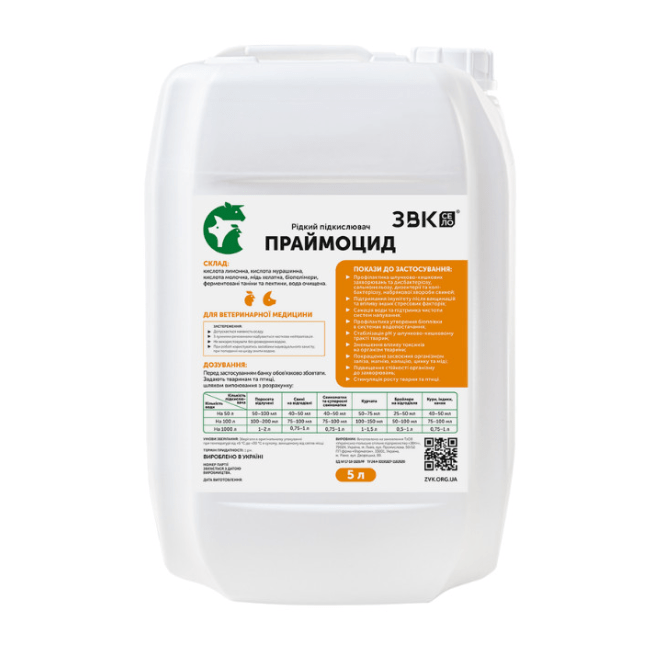 Рідкий підкислювач “Праймоцид” 5 л ЗВК (для тварин та птиці)