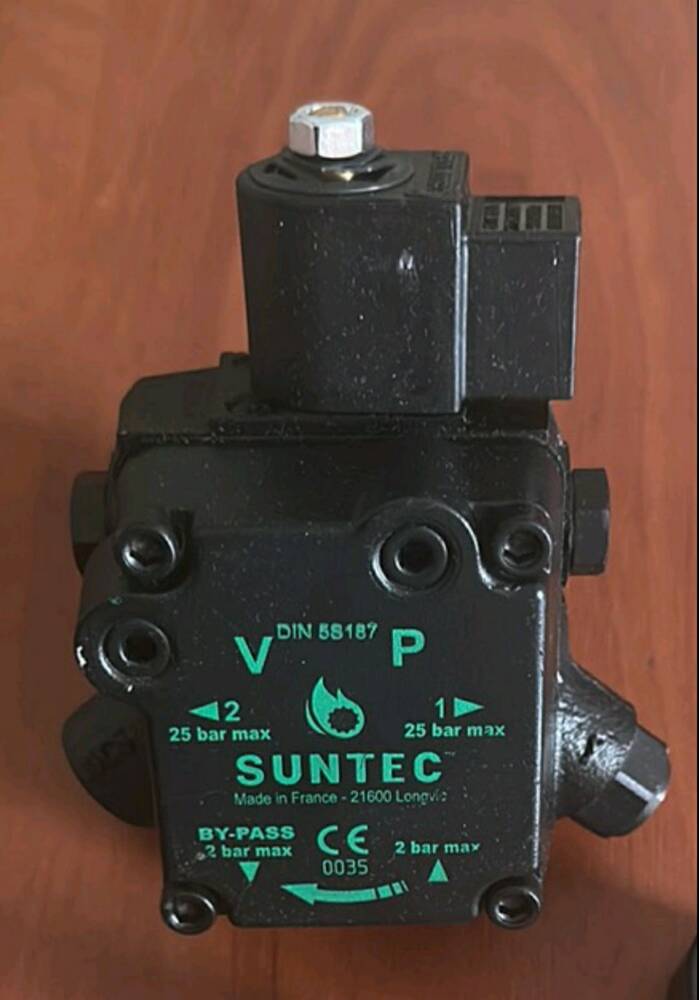 Рідкопаливний насос Suntec AUV 47 L 9877 для пальників має вбудований електромагнітний клапан, який виконує функцію запірного клапана для швидкого переривання і поновлення подачі палива, незалежно від швидкості обертання, клапан нормально хзакрыт.
