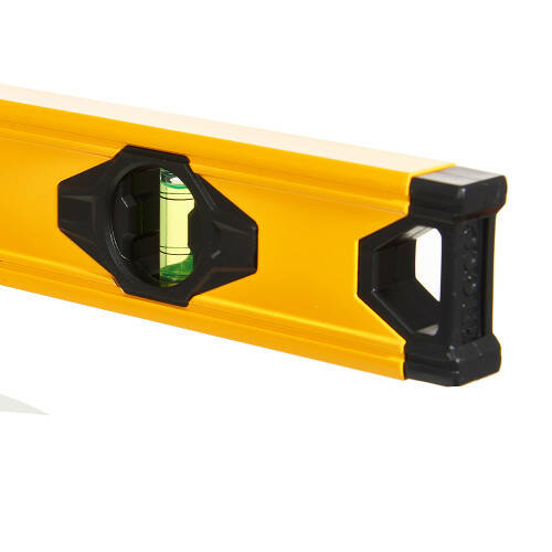 Конструкція виконана з високоякісного алюмінію товщиною 1 мм, що гарантує надійність і довговічність. Такий матеріал забезпечує невелику вагу інструменту, що полегшує його транспортування та використання навіть у важкодоступних місцях. Рівень має класичну форму, яка зручна для тримання та роботи, а його чіткі вимірювальні мітки дозволяють швидко і легко перевіряти рівність поверхонь.