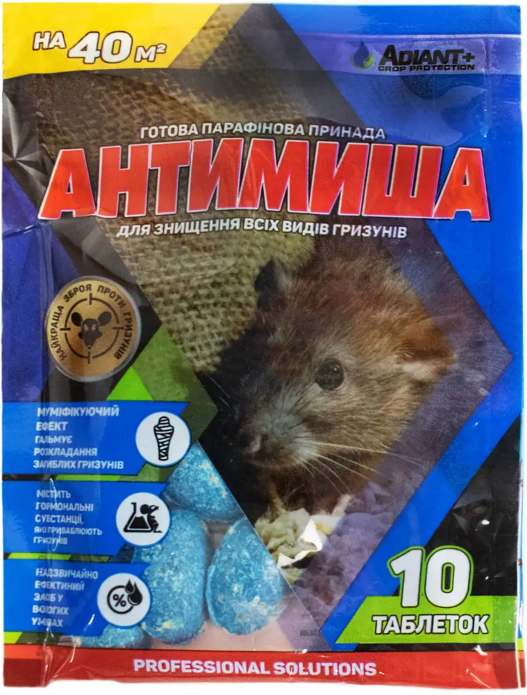 Родентицид Антимыша от мышей и крыс 10 шт Adiant+