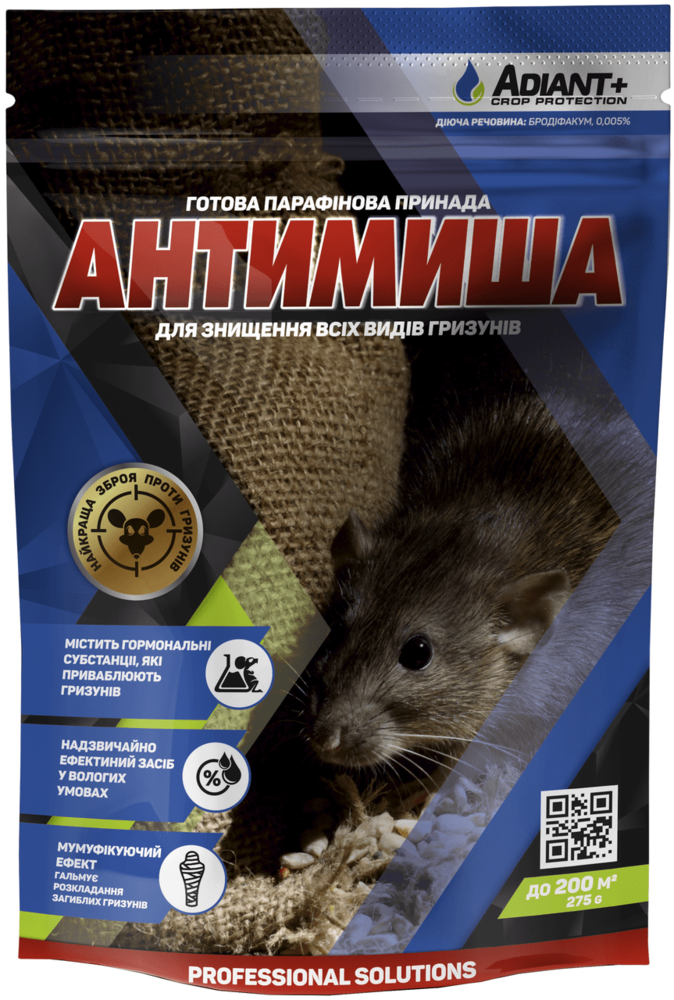 Родентицид Антимыша от мышей и крыс 275 г Adiant+