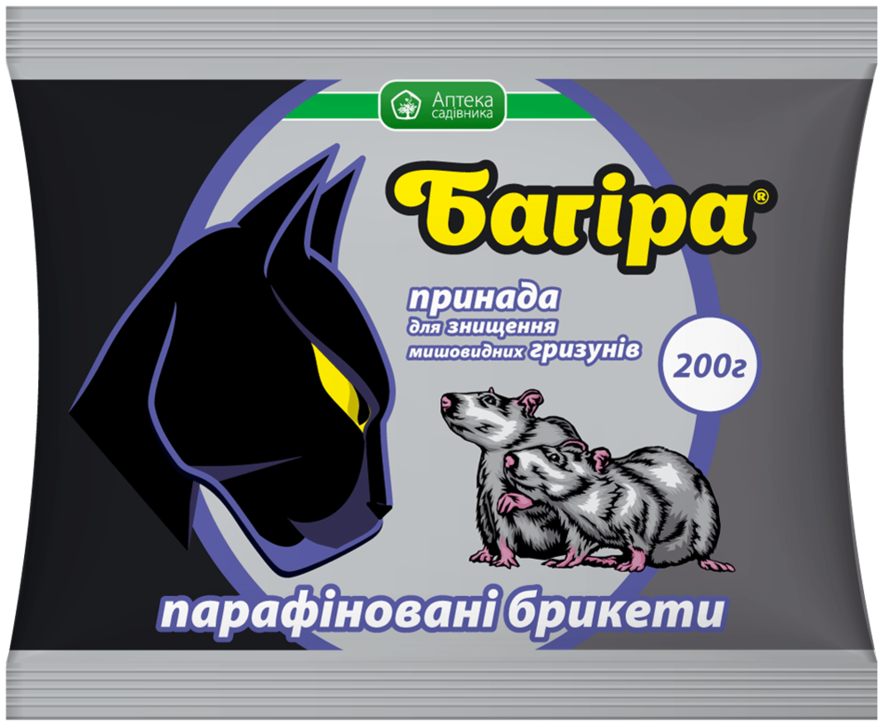 Багира - Готовая ядовитая приманка для уничтожения мышевидных грызунов в жилых и нежилых помещениях, на приусадебных участках и сельскохозяйственных угодьях.