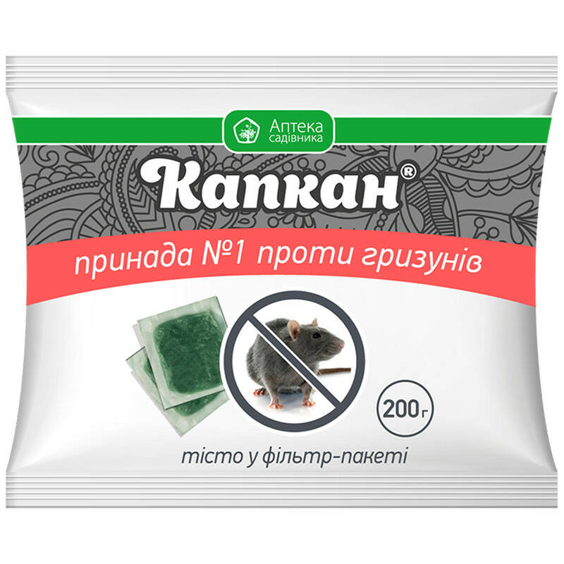 Особливості використання: капкан вже готовий до застосування і не потребує будь-якого розведення. Для досягнення максимальної ефективності препарату, необхідно напередодні його розкладки досліджувати всю територію з метою визначення кращих точок розміщення принад — місць укриття і місць харчування гризунів-шкідників, їх ходів і нір у підлозі, стінах, фундаменті і купах сміття, а також джерел води, що особливо важливо для боротьби з пацюками. По можливості всі місця для розкладок приманок повинні бути недоступні для дітей, а також птахів і тварин, у тому числі і домашніх.У польових умовах при боротьбі з полівками, приманки розкладають восени після збирання врожаю або навесні, в період дефіциту природної їжі для гризунів. Приманки розкладають з розрахунку 1,5-2,5 кг/га по 20 г в нору з інтервалом приблизно 10-15 м, приманки поновлюють через 7-10 днів, до повного знищення гризунів.У саду приманки розкладають навколо кожного дерева з розрахунку 10 г. Пошкоджені приманки поновлюють 2-3 рази, також з інтервалом 7-10 днів. Приманку розкладають за допомогою совка, пінцета або рукою, захищеної гумової рукавичкою. Не використовувати столовий посуд! Заборонено торкатися голими руками згідно умов безпеки і в зв’язку з можливим відлякуванням гризунів людським запахом. |
