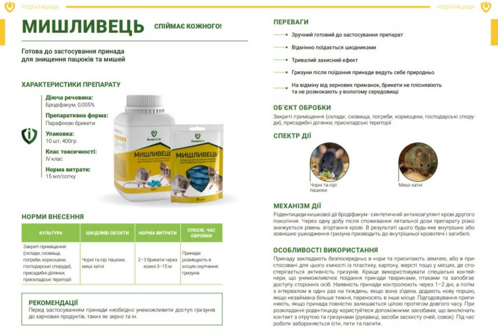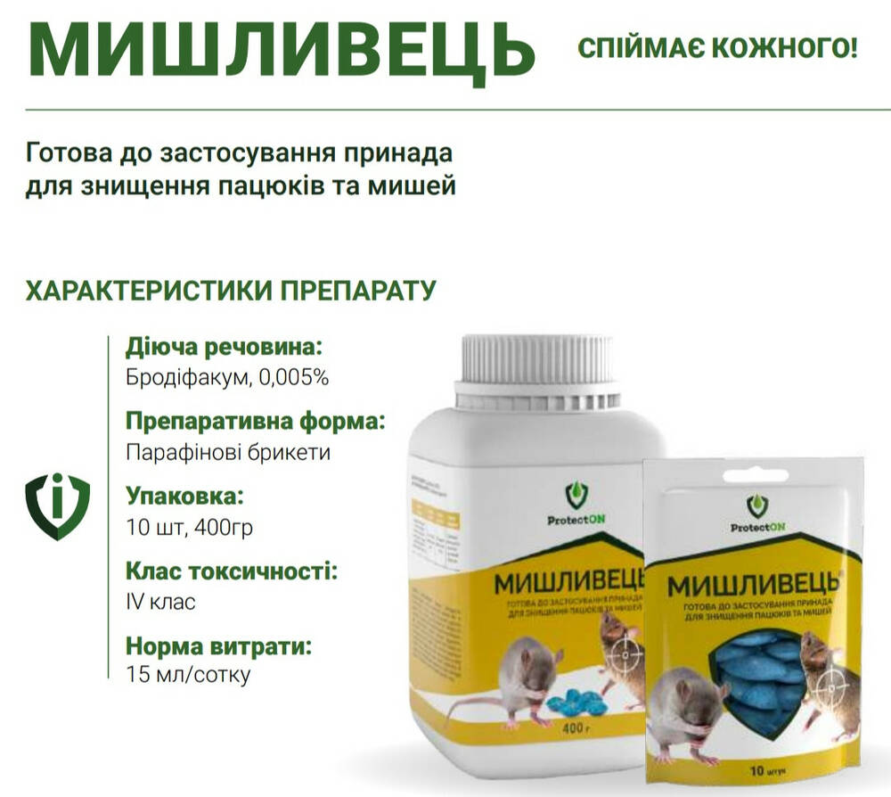 Мишливець - Готовая к применению приманка для уничтожения крыс и мышей.