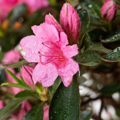 Рододендрони мають поверхневе вкорінення і мають дуже дрібне коріння, тому при посадці рослину слід обережно дістати з горщика, і посадити не глибоко, з додаванням великої кількості органічних речовин (таких як листяна цвіль, торф або якісний шкідливий компост) до місця посадки, щоб утворити гарну пухку суміш.