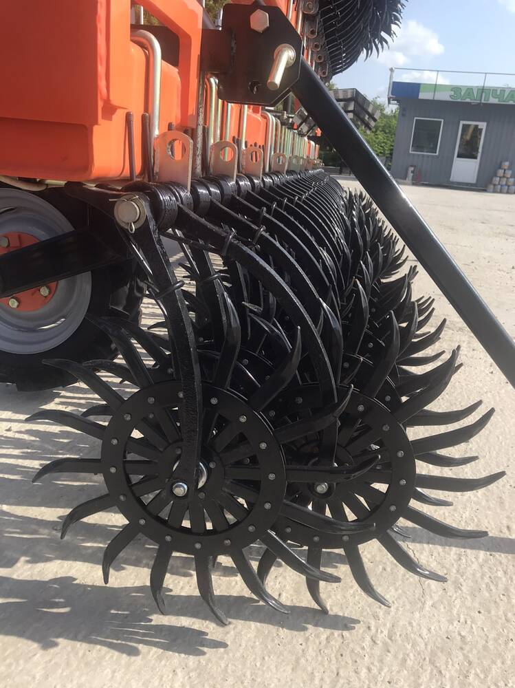 Опційно стійка з мотигою має легке регулюванням для встановлення міжрядної відстані, шляхом відведення пружини зі стійки та підняттям стійки з мотигою догори та встановлення обмежувальної вісі, яка буде тримати мотигу.