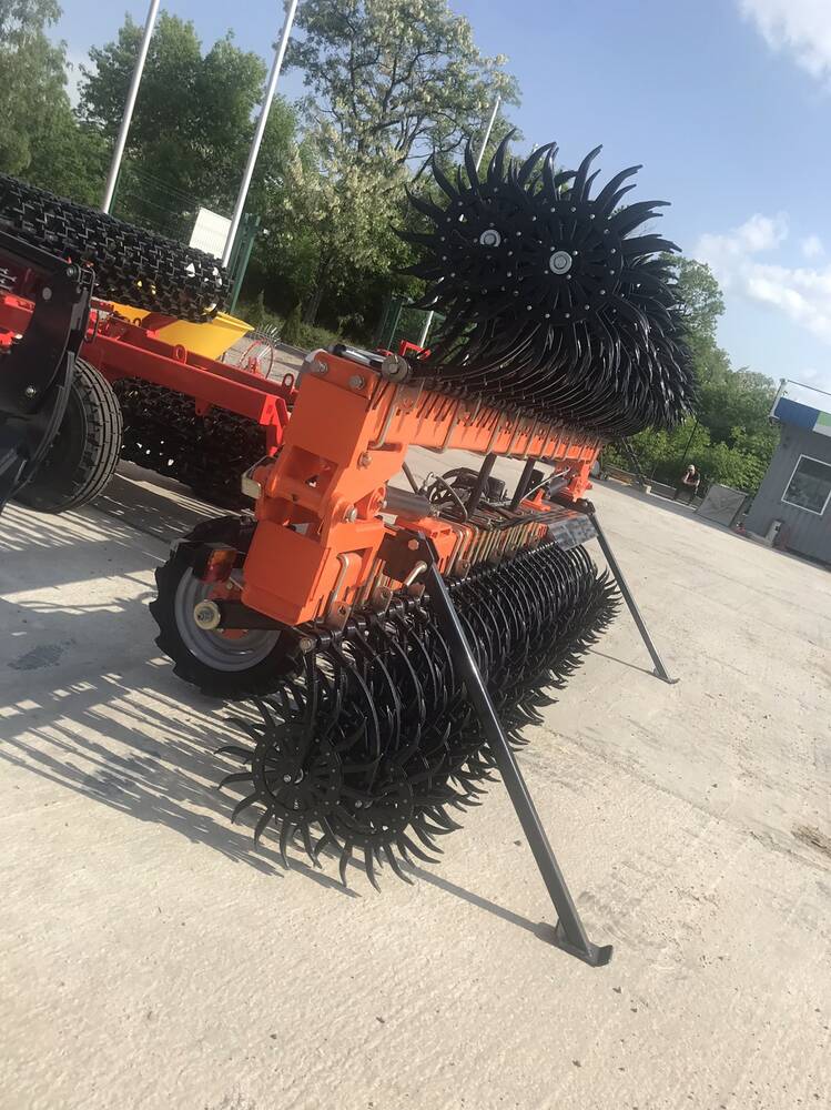 Обробка ведеться по всій ширині знаряддя, при будь-якій кількості рослинних залишків і не забивається. Цей агрегат сконструйований за схемою підпружиненного коливаючого важеля.