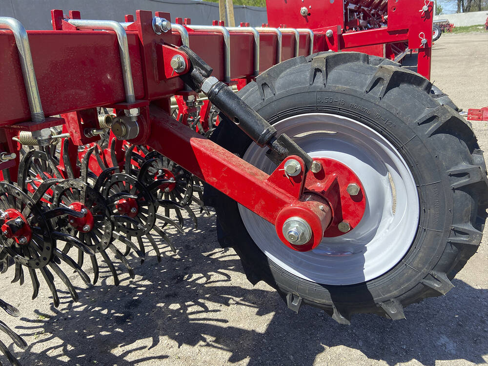 колесами з гвинтом для регулювання глибини заробки борони;