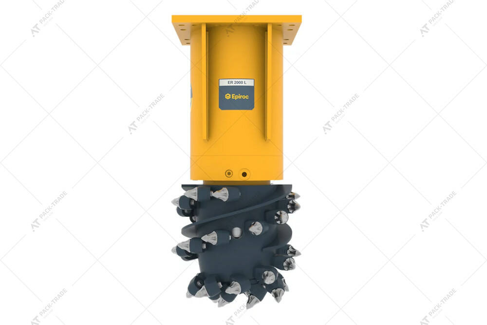 Роторна барабанна фреза Epiroc ER2000L на екскаватор. Вага машини-носія — 35-50 т. Роторні фрези поздовжньої конструкції серії ER-L призначені для розроблення вузьких траншей, демонтажу оголовків паль і очищення канав.