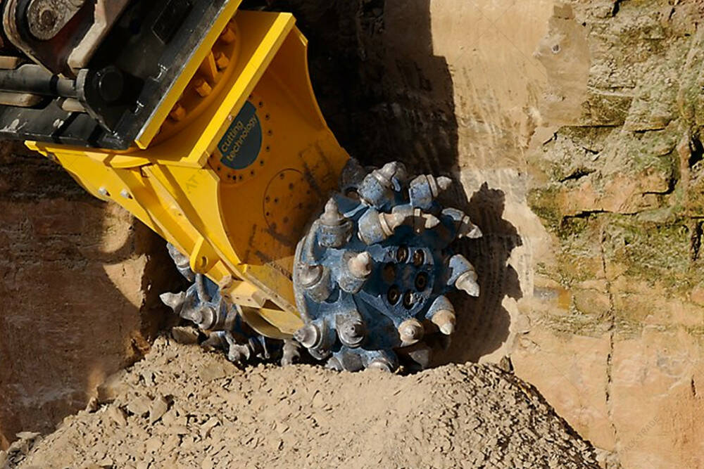 Роторна барабанна фреза Epiroc ER250 на екскаватор. Вага машини-носія — 8-15 т. Роторні фрези серії ER поперечної конструкції чудово підходять для руйнування бетонних стін, розбирання конструкцій, вирівнювання поверхонь, риття траншей, виїмки мерзлого ґрунту, гірничих розробок і відкритого видобутку м'якого матеріалу.