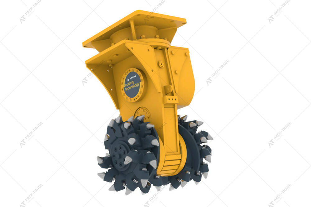 Роторна барабанна фреза Epiroc ER250X на екскаватор. Вага машини-носія — 8-15 т. Роторні фрези серії ER поперечної конструкції чудово підходять для руйнування бетонних стін, розбирання конструкцій, вирівнювання поверхонь, риття траншей, виїмки мерзлого ґрунту, гірничих розробок і відкритого видобутку м'якого матеріалу.
