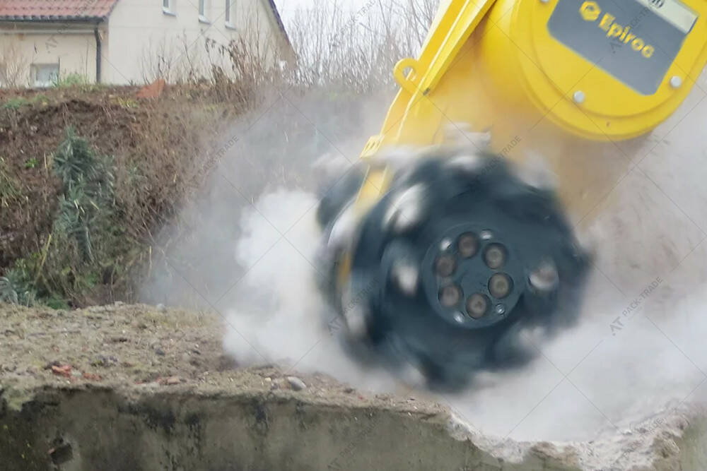 Роторна барабанна фреза Epiroc ER5500 на екскаватор. Вага машини-носія — 70-125 т. Роторні фрези серії ER поперечної конструкції чудово підходять для руйнування бетонних стін, розбирання конструкцій, вирівнювання поверхонь, риття траншей, виїмки мерзлого ґрунту, гірничих розробок і відкритого видобутку м'якого матеріалу.