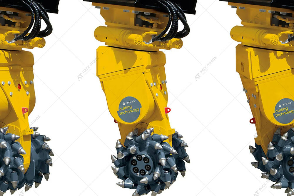 Роторна барабанна фреза з гідравлічним обертанням Epiroc ERC1500XL на екскаватор. Вага машини-носія — 20-40 т. Вбудований гідравлічний поворотний механізм підвищує точність і продуктивність роторної фрези під час виконання складних завдань.