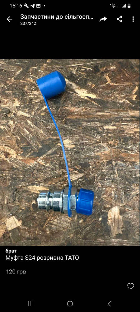 Муфта розривна ПАПА МТЗ S24 М20х1,5 (ЄВРО-клапан)