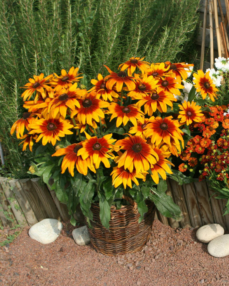 Рудбекія Осінній ліс - багаторічна рослина висотою 60 см, з жорстко опушеним стеблом. Суцвіття - кошики діаметром 6-10 см, з червоно-жовтими квітками з коричневою серединкою і загостреними пелюстками. Розмножуються насінням. У березні висівають в розсадні ящики, злегка присипаючи землею; оптимальна температура ґрунту 18 ... 25 ° С. Сходи з'являються на 14-21 день. У відкритий ґрунт на постійне місце висаджують у травні, відстань між рослинами 25-30 см. Цвітіння рясне, з липня до заморозків. Непогано ростуть у тіні, хоча й віддають перевагу сонцю. Рослини практично не пошкоджуються хворобами та шкідниками. Використовується для oфopмлeння paбaтoк, бopдюpів, клумб.