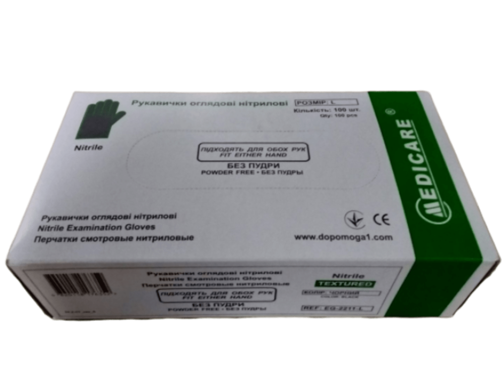 Рукавички Medicare нітрілові без пудри н/с чорні 50 пар L