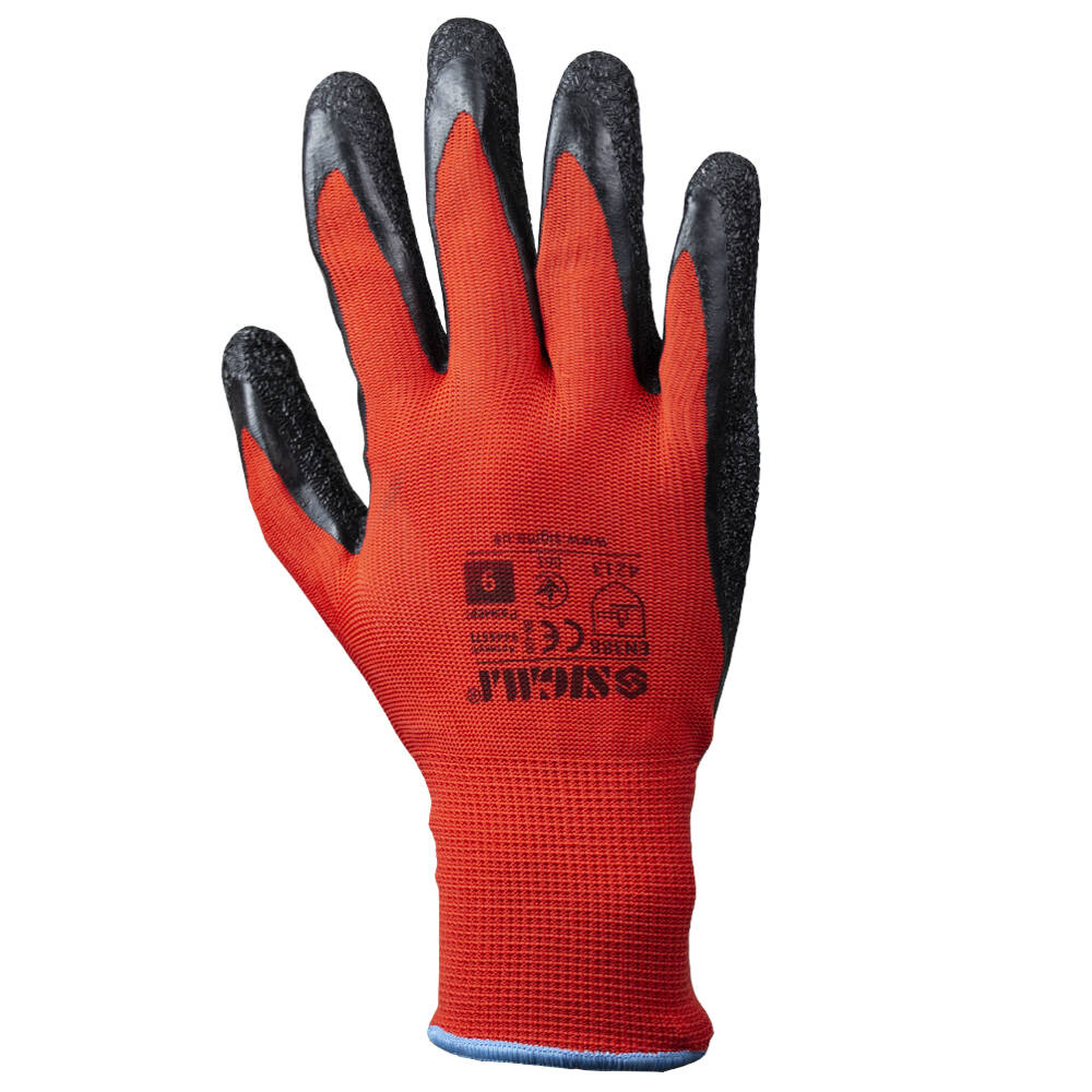 Рукавички трикотажні з частковим латексним спіненим покриттям р9 (чорні манжет) SIGMA (9445571) призначені для захисту від механічних впливів, від порізів, проколів і мають хороше зчеплення як з сухими так і з вологими поверхнями.