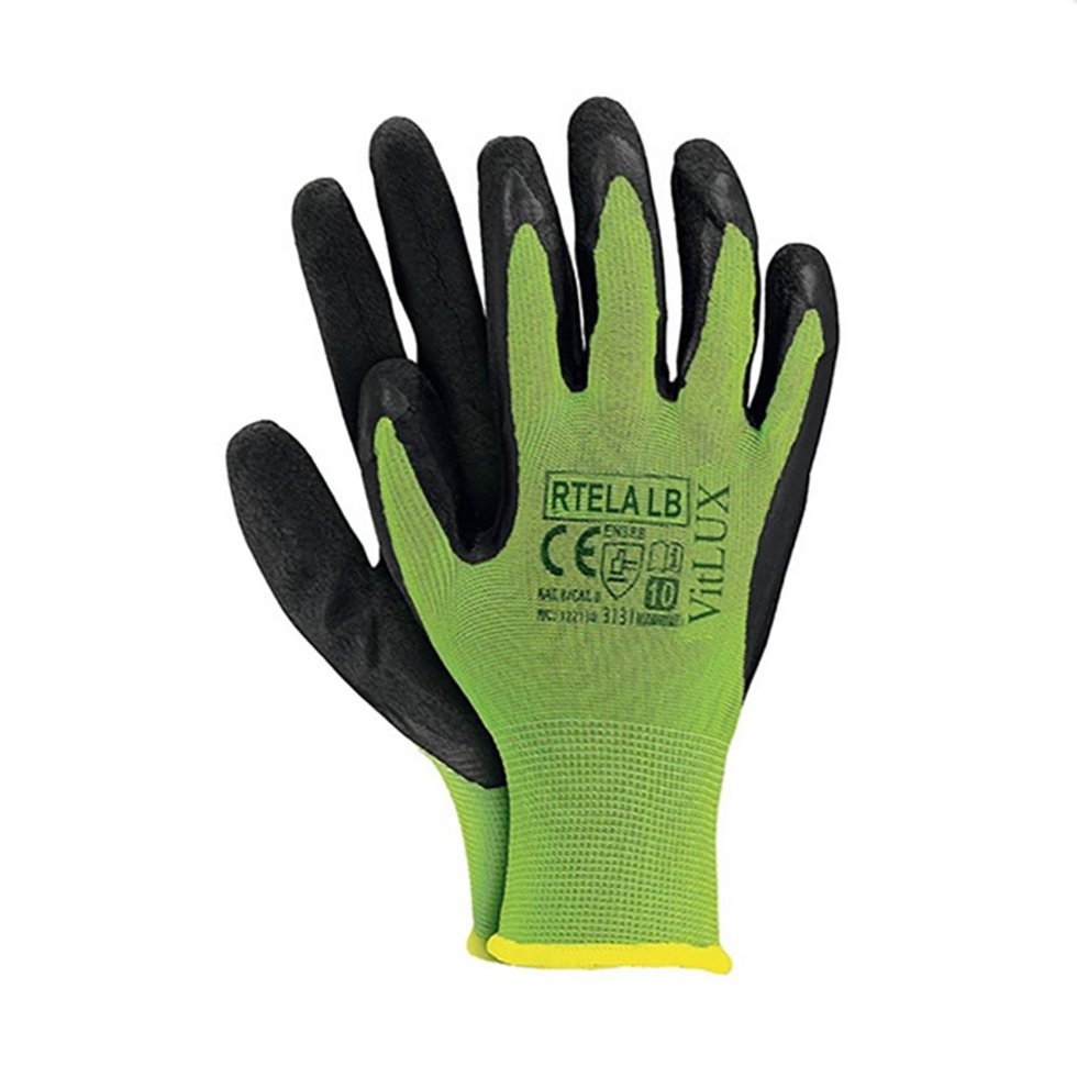 Рукавиці RTELA/LATEX RB поліестерові зелені покриті чорн. нітрилом 12шт/уп (240шт/ящ)