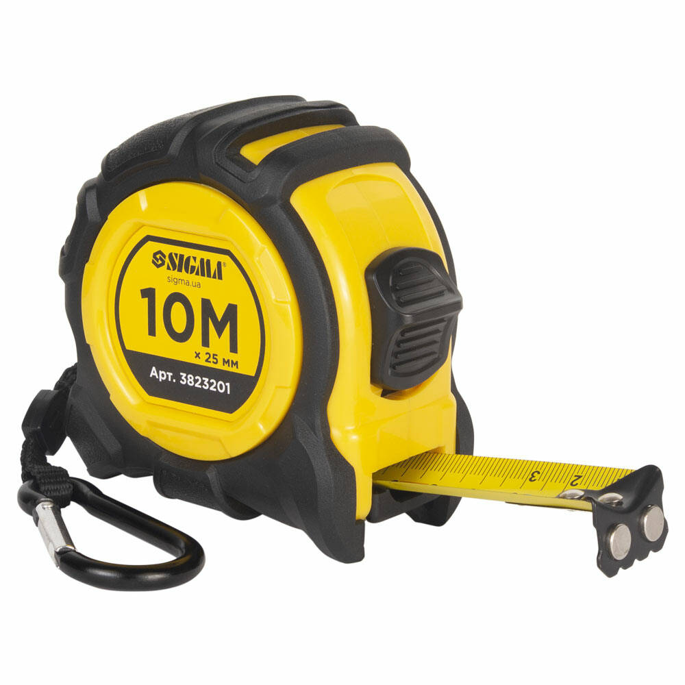 Рулетка магнітна обгумована Advanced нейлонове покриття 10м×25мм SIGMA (3823201)