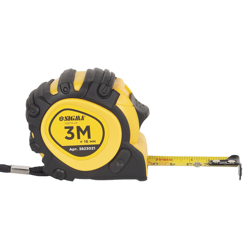 Рулетка магнітна обгумована JT фіксатор+гальмо 3м×16мм SIGMA (3823021)