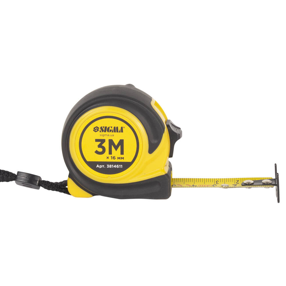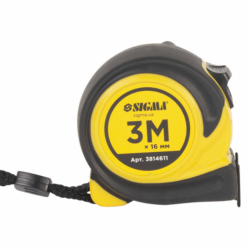 Рулетка обгумована Compact двостороннє полотно/зачіп 3м×16мм SIGMA (3814611)