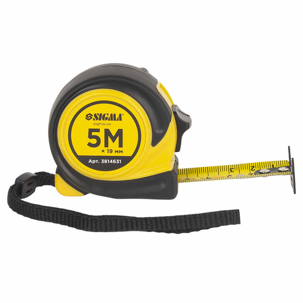 Рулетка обгумована Compact двостороннє полотно/зачіп 5м×19мм SIGMA (3814631)