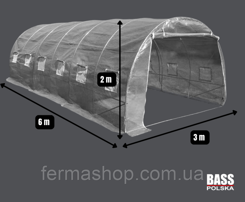 Садовая теплица с UV-12 пленкой 18 м2 (6х3х2м) BASS POLSKA, Серая