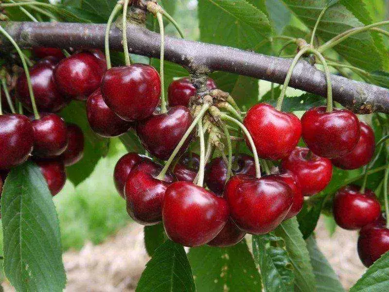 Плоди великі, яскраво-червоного кольору, при повному дозріванні темно-бордові, одномірні, правильної серцеподібної форми, соковиті та солодкі.