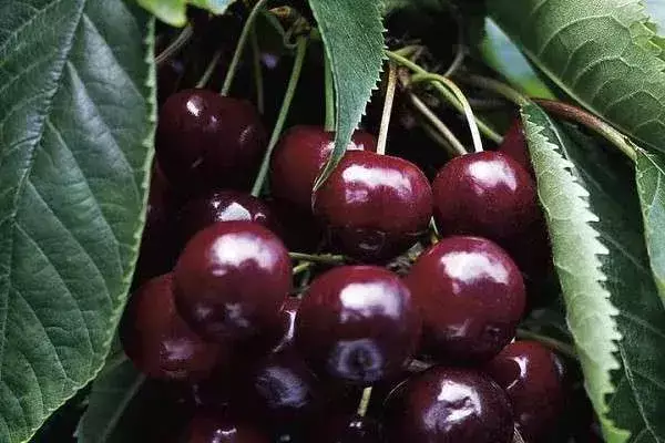 Ягоди черешні середні, овальні, неправильної форми, темно-бордового кольору, яскравого десертного смаку.