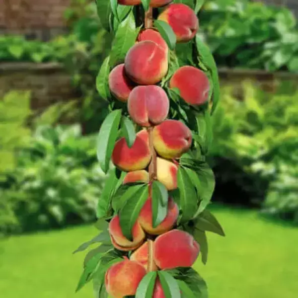 Колоновидний персик "Кримський" - сорт раннього терміну дозрівання. Має середньорозкладну крону. Плоди 100-120 г. Цей сорт є самоплідним та відрізняється надзвичайно високим рівнем врожайності. Персик Кримський також може похвалитися відмінною холодом і посухостійкістю. Дегустаторська оцінка смакових якостей плодів цього сорту складає 4,4 бали. Колір персиків жовтий, із бордовими вкрапленнями. М'якуш жовтий ароматний, кисло-солодкий на смак. Кісточка від плода відокремлюється слабко. Стійкий до клестероспоріозу та кучерявості.
