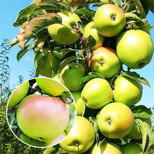 Яблука середнього розміру, вагою близько 120 г. Вони світло-зелені, з великим рум'янцем по всій поверхні. М'якоть щільна, соковита, дрібнозерниста, з гармонійним кисло-солодким смаком. Сорт вважається десертним.