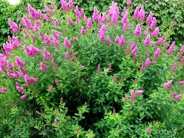 Квіти насичено-рожевого кольору, під вагою суцвіть пагони трохи відхиляються убік, утворюючи рожевий квітковий фонтан.
