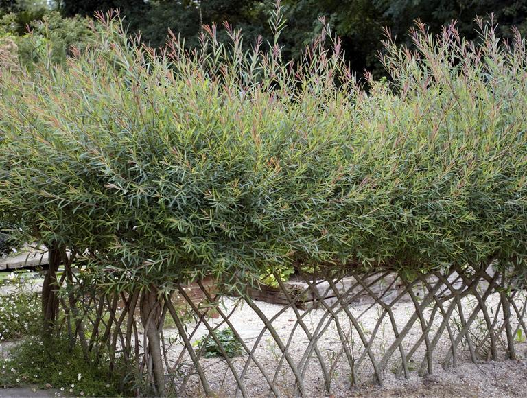 Зовнішній вигляд - пагони бордові, блискучі, листя вузькі зеленого кольору з блакитним відтінком.