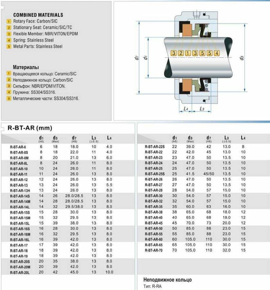 Аналог механічних ущільнень: Burgmann BT-AR, AESSEAL B01, Vulcan 18, Anga C10, Герметика М212.NC.