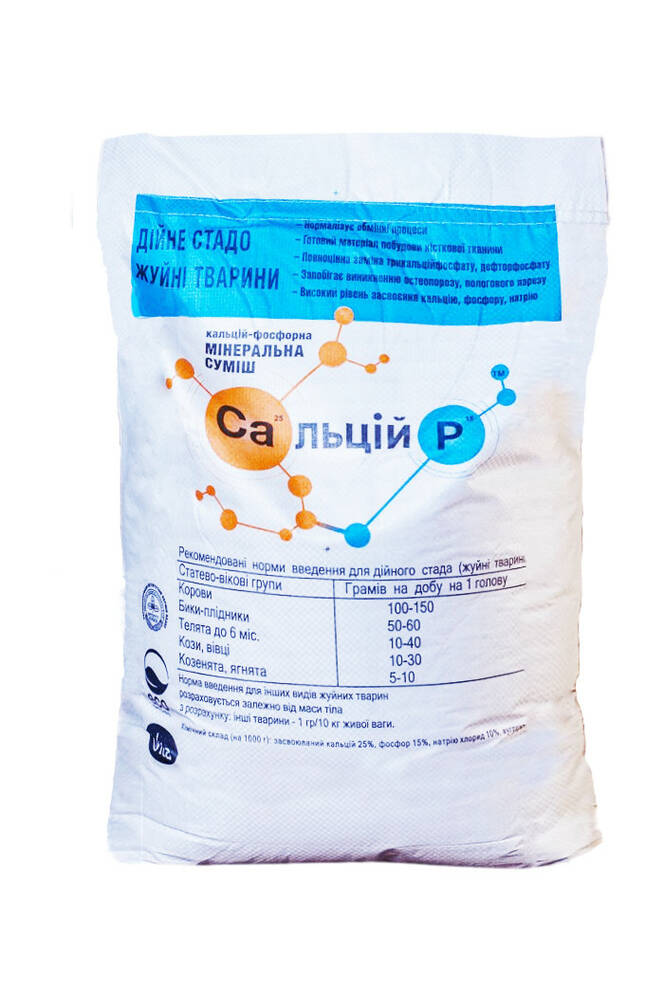 Са льцій Р – спеціально розроблена та особливим чином виготовлена мінеральна суміш для годівлі сільськогосподарських продуктивних тварин, птиці, містить легкозасвоювану форму кальцію і фосфору, максимально збалансоване співвідношення яких дозволяє організмові засвоювати, абсорбувати та утримувати кальцій та фосфор в структурі кісток.