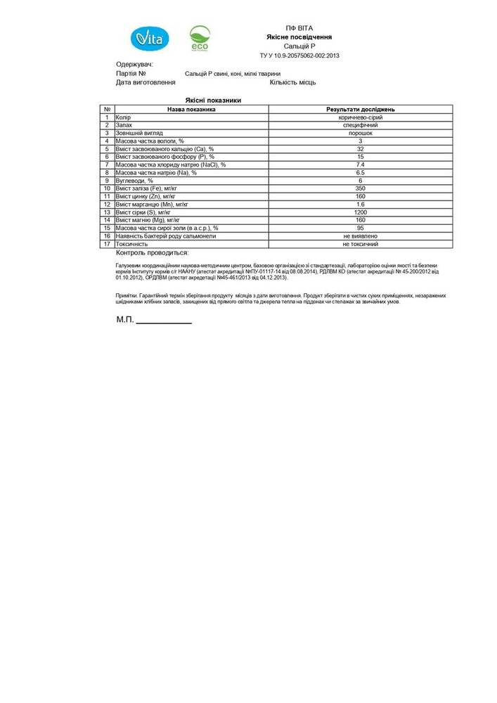 Використання Сальцій Р дозволяє повністю виключити введення трикальційфосфату, дефторованого фосфату в раціонах годівлі.