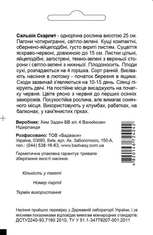 Сальвія Скарлет, 0,1 г, Садиба Центр