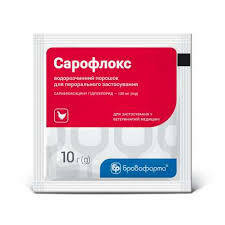 Лікування свійської птиці (курчат, бройлерів, ремонтного молодняку курей) за колібактеріозу, сальмонельозу, некротичного ентериту, септицемії, стафілококозу, стрептококозу, мікоплазмозу, гемофільозу, пастерельозу, ускладнень бактеріальними інфекціями вірусних захворювань, неспецифічних захворювань органів дихання, ШКТ та сечостатевої системи, що спричинені мікроорганізмами, чутливими до сарафлоксацину.