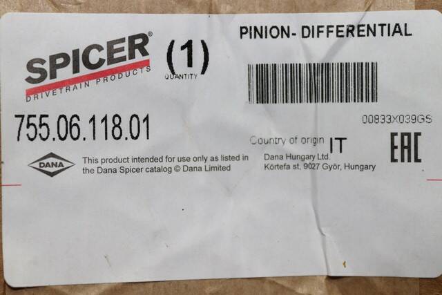 3. Гарантія виробника – на всі запчастини DANA SPICER поширюється офіційна гарантія, що забезпечує захист від підробок.