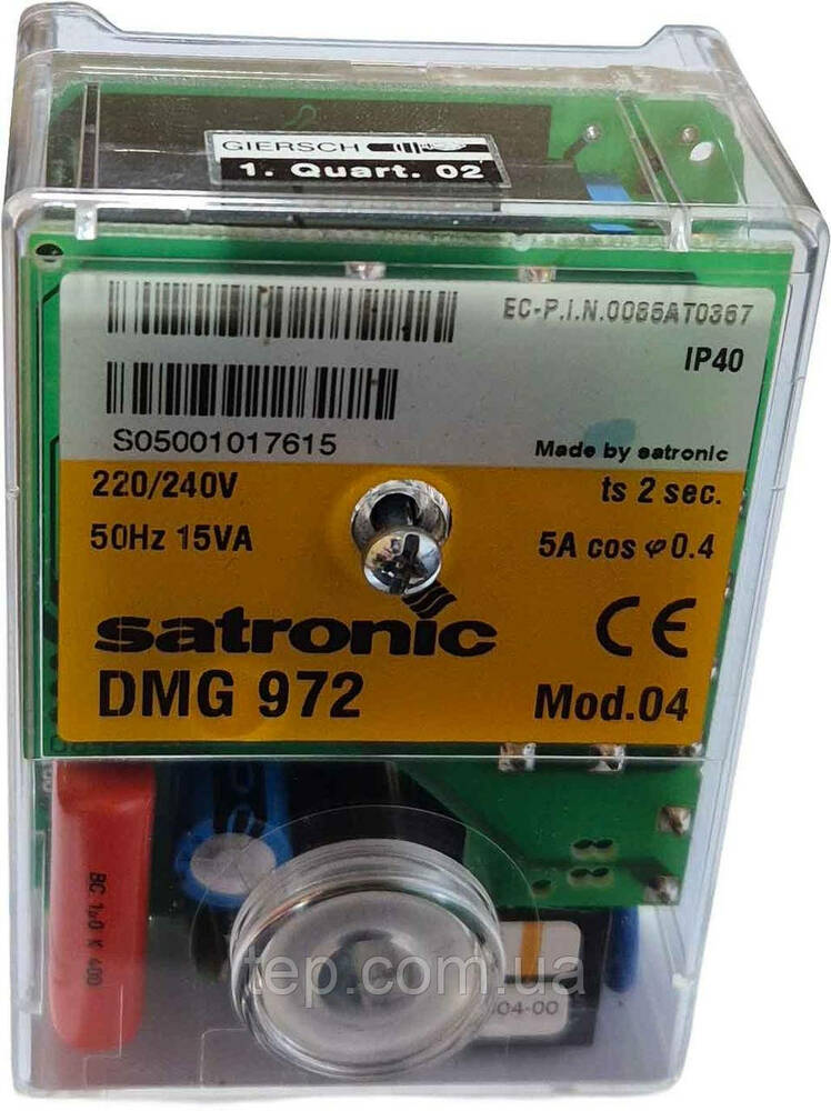 Сокильний автомат Honeywell (Satronic) DMG 972 контролює потужність 2-ступеневих газових пальників, а також комбінованих (газ/дизельне паливо) пальників Giersch, Hofamat.