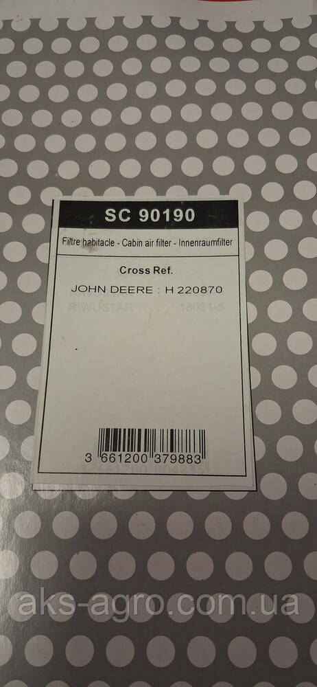 SC90190 Фільтр HD салону JOHN DEERE HIFI AF27961 10034-55 CU32003 PA30006 H220870 SKL46489