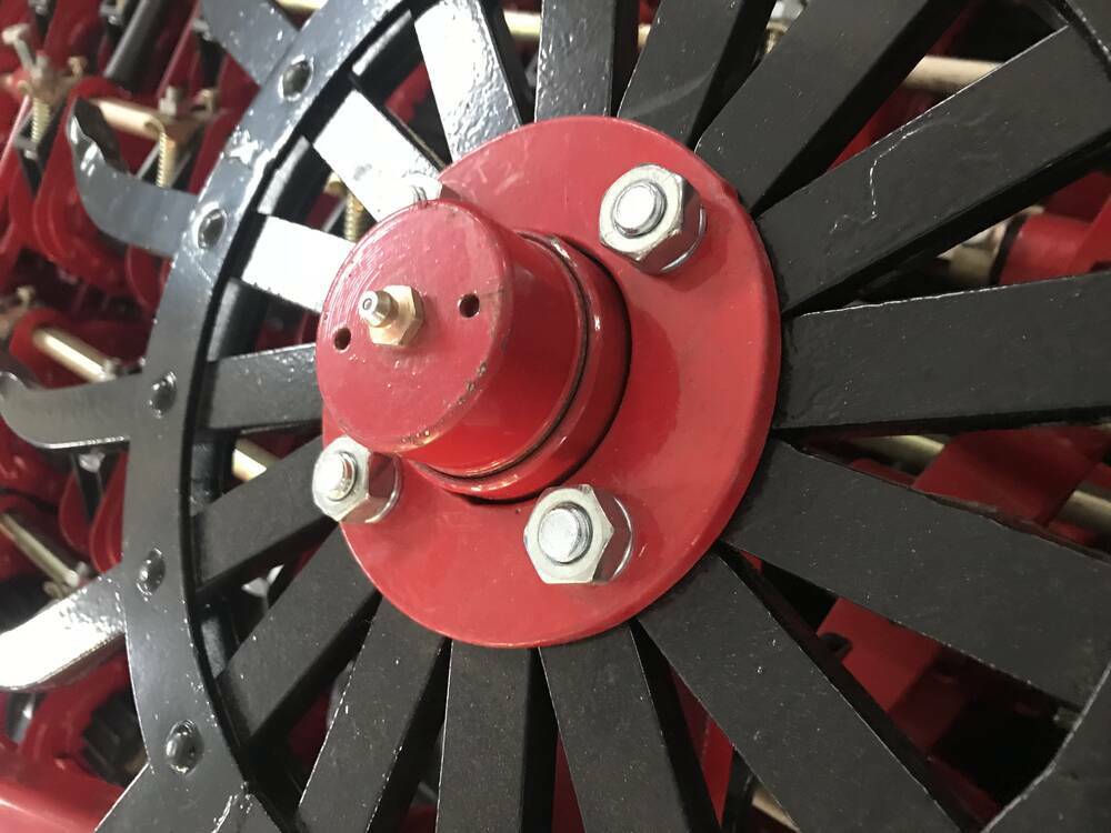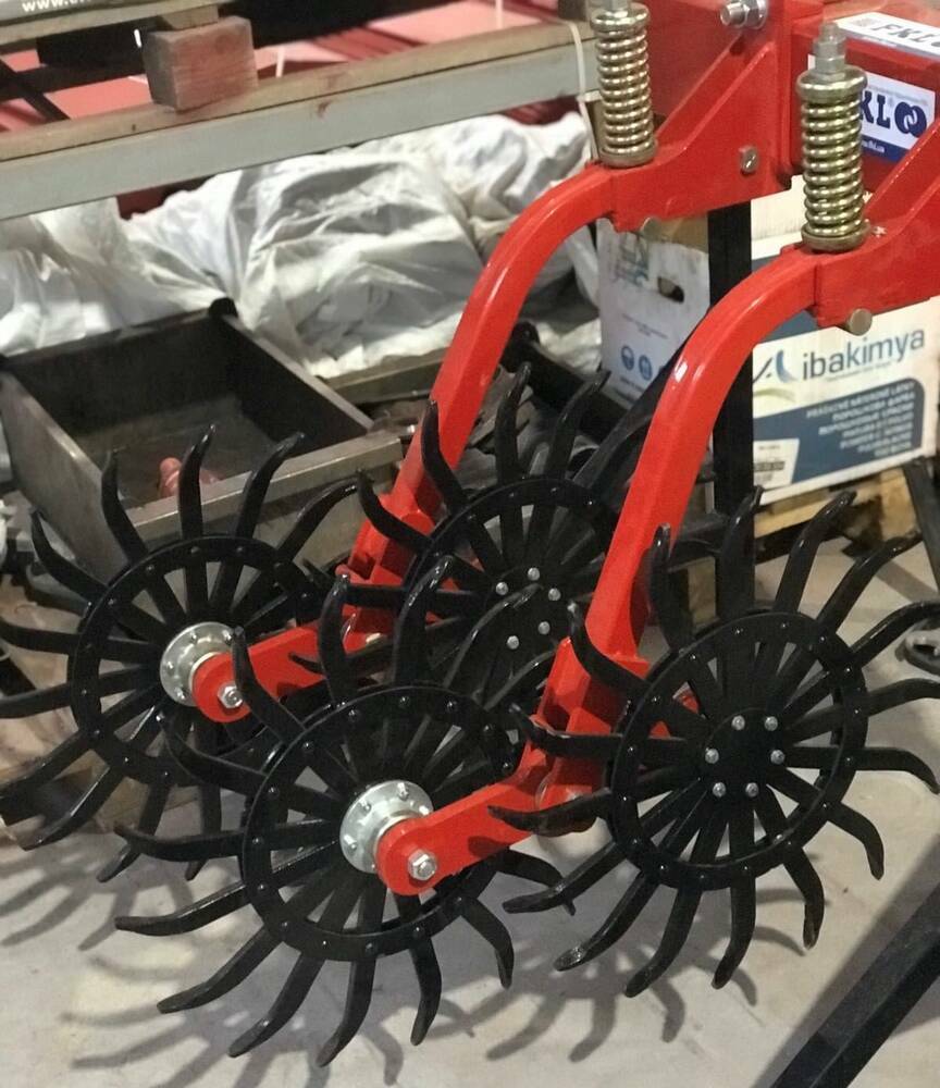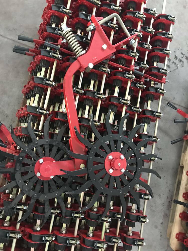 На рамі передбачені опорні колеса з гвинтом регулювання глибини загортання борони.