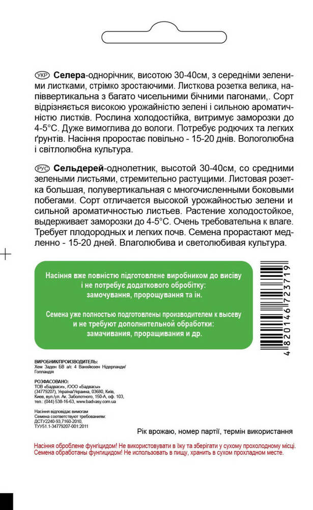 Однорічник, висотою 30-40см, з середніми зеленими листками, стрімко зростаючими. Листкова розетка велика, напіввертикальна з багато чисельними бічними пагонами,. Сорт відрізняється високою урожайністю зелені і сильною ароматичністю листків. Рослина холодостійка, витримує заморозки до 4-5С. Дуже вимоглива до вологи. Потребує родючих та легких ґрунтів. Насіння проростає повільно - 15-20 днів. Вологолюбна і світлолюбна культура.