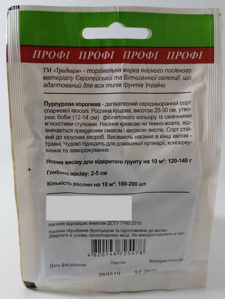 Семена фасоли Пурпурная королева Садыба центр Satimex Германия 20 г