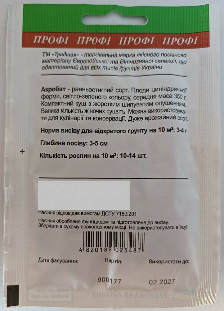 Семена кабачков Акробат Садыба центр Украина 10 г