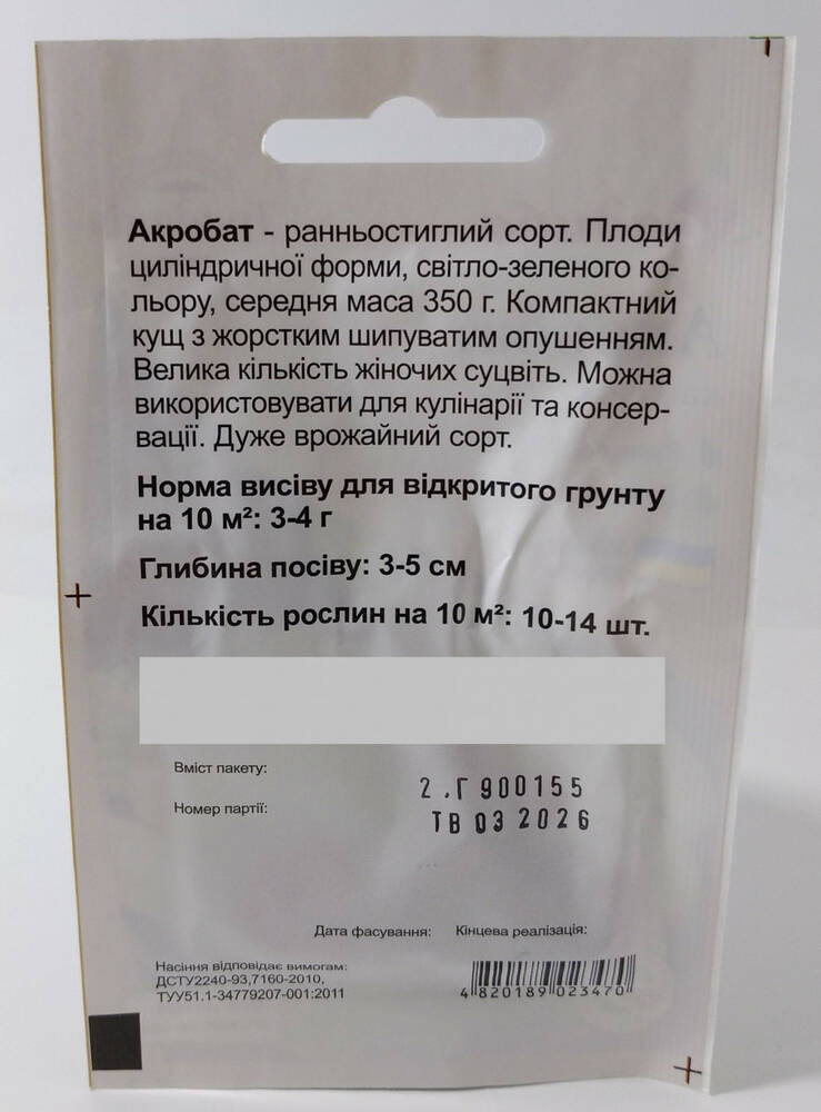 Семена кабачков Акробат Садыба центр Украина 2 г